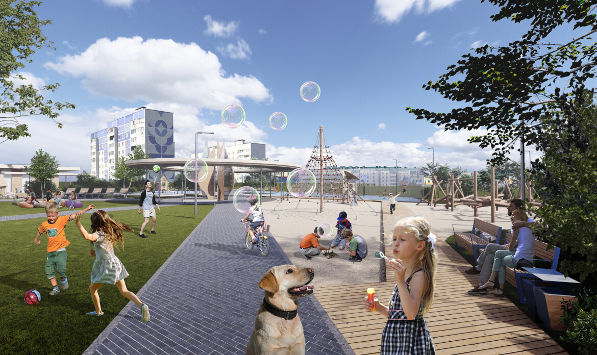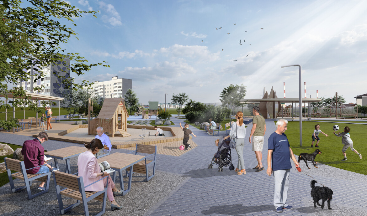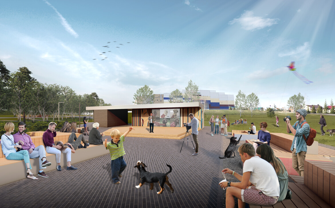 «Часть стейкхолдеров проекта хотела видеть на территории хоккейную коробку, но большинство местных жителей говорило, что им нужна большая открытая поляна — территория для отдыха, пикников, игр и фестивалей. Услышать и учесть разные мнения — это и стало основным вызовом. Нам это удалось: мы поделили парк на четыре функциональные зоны, в каждой из них предусмотрены активности и малые архитектурные формы для разных групп пользователей», — рассказали разработчики о своем процессе работы.