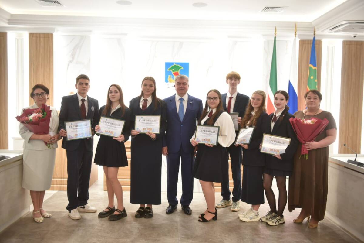 Сегодня в здании администрации Набережных Челнов прошла торжественная встреча выпускников, набравших 100 баллов на ЕГЭ, их учителей и директоров школ с мэром Автограда Наилем Магдеевым. Это традиционное мероприятие стало признанием заслуг не только самих выпускников, но и педагогов, чьими усилиями был достигнут высокий результат.