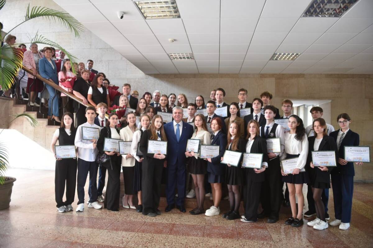 Каждому выпускнику, набравшему 100 баллов, была вручена денежная премия в размере 10 тыс. рублей. Не остались без награды и наставники – в зависимости от количества подготовленных стобалльников размер поощрения составил от 50,5 до 200 тыс. рублей.