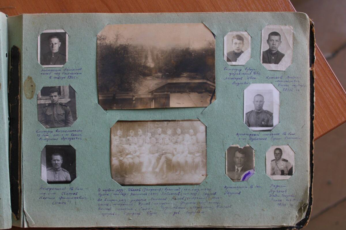 Большинство фото сделано в столице поверженной Германии бойцами батареи с помощью трофейного фотоаппарата. На одном – здание рейхстага с зияющей дырой от снаряда, на другом – вид на Берлин с Башни Победы. Вот пушки 16-й батареи в лесочке, рядом – снимки кухни, штаба, построения и портреты фронтовых товарищей.
