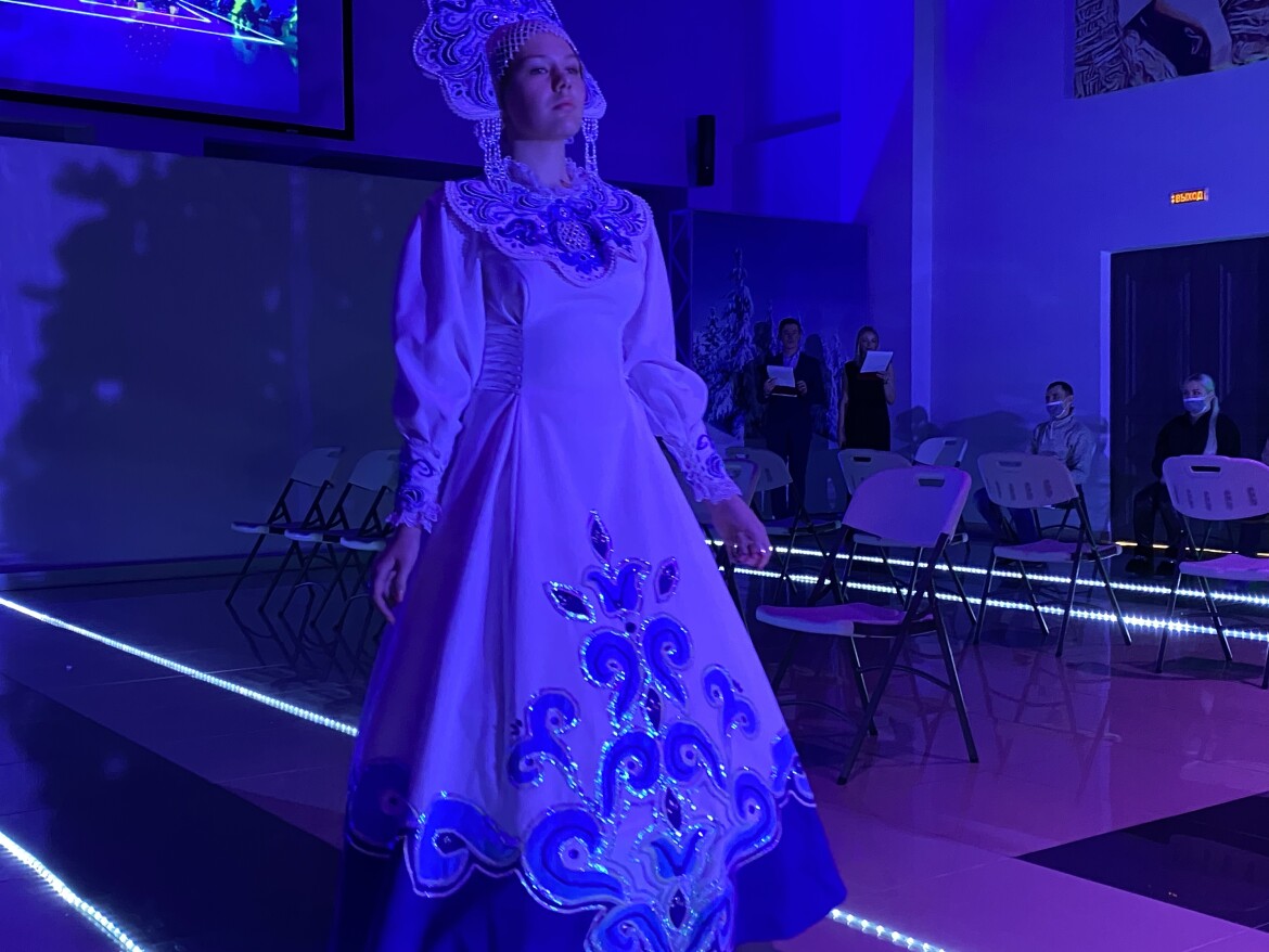 На подиуме юные модели в рамках конкурсной программы среди дизайнерских коллективов и отдельных исполнителей показали коллекции в трех номинациях: народные мотивы в современном костюме, сценический народный костюм, молодые дизайнеры.