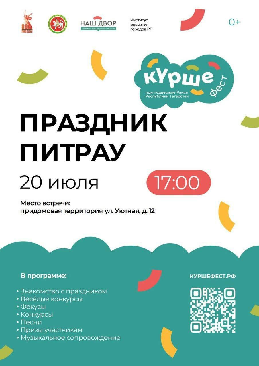 20 июля в селе Усады (ЖК «Южный парк») стартует фестиваль дворовых праздников «Күрше». Первое мероприятие — народные гуляния «Питрау» — пройдут в воскресенье на придомовой территории по адресу: ул. Уютная, 12. Начало мероприятия — в 17:00.