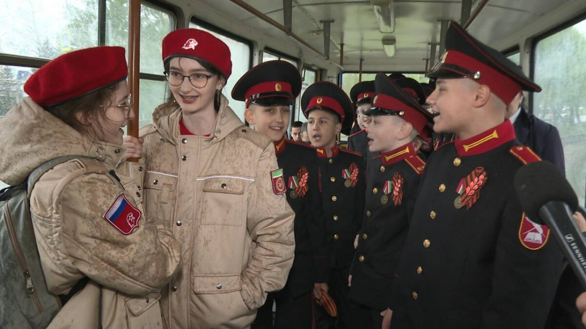 Песни Победы в трамваях: кадеты и юнармейцы устроили флешмоб для нижнекамцев