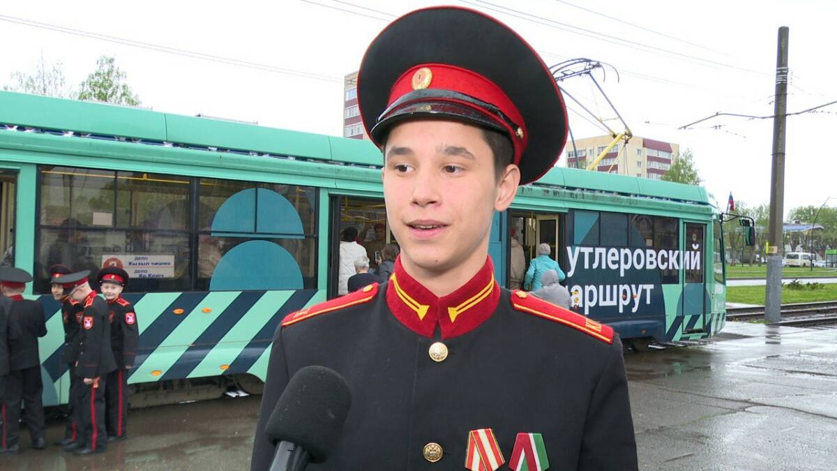 В честь наступающего Дня Победы курсанты Татарстанского кадетского корпуса, а также юнармейцы 36-й, 37-й и 38-й школ города провели музыкальный флешмоб прямо в трамваях.
