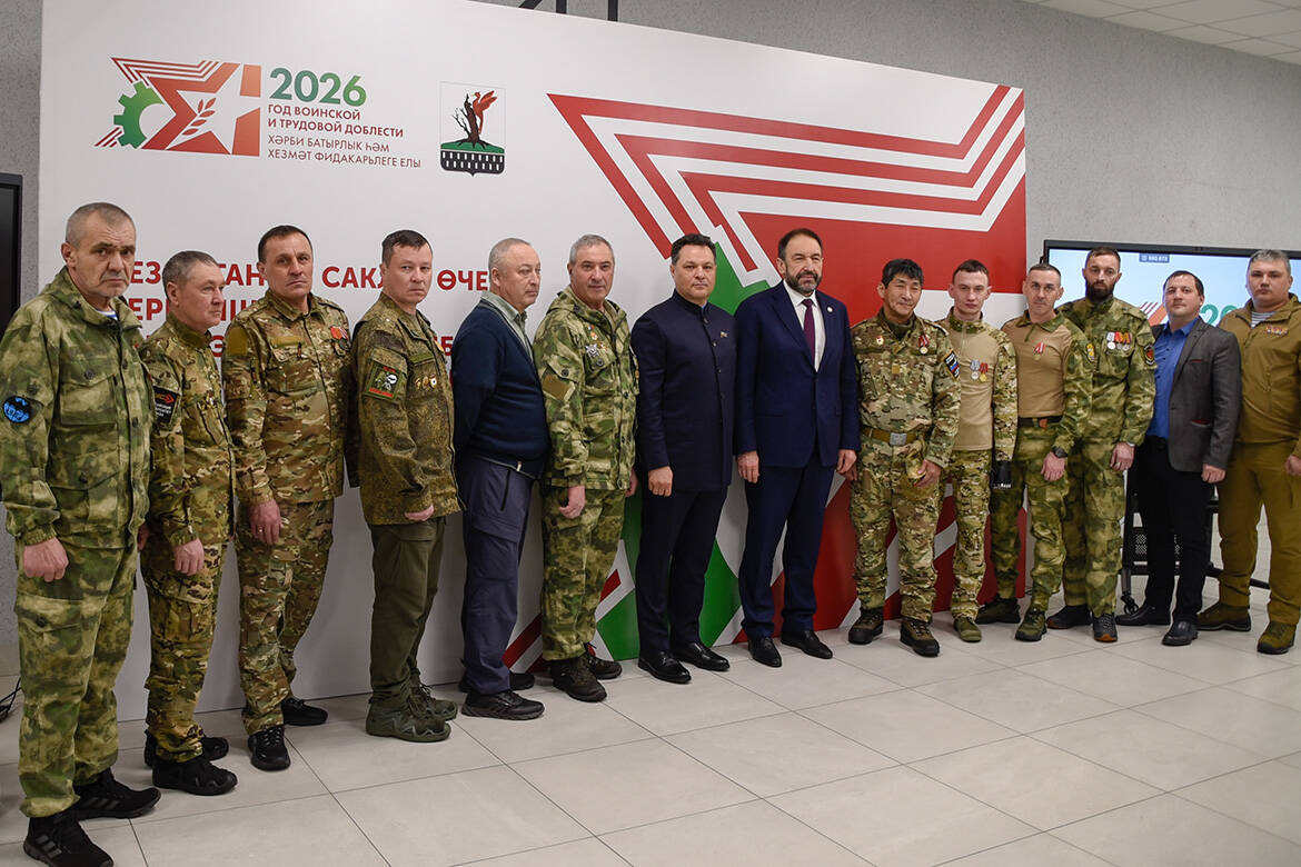 Итоговая сессия Елабужского района прошла на площадке образовательного комплекса «Адымнар – Алабуга». Перед ее началом Премьер-министр Татарстана Алексей Песошин, председатель Ассоциации «Совет муниципальных образований РТ» Экзам Губайдуллин и глава района Рустем Нуриев встретились с ветеранами СВО, которые входят в состав добровольной народной дружины.