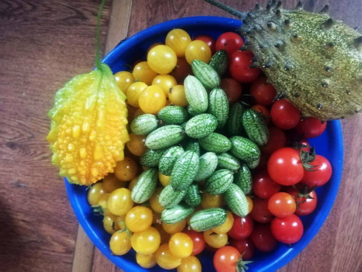 Также я посадила красный огурец, его можно выращивать даже ради цветов. В этом году сажала впервые, сами огурцы не очень понравились, особого вкуса в них нет. Неплохой урожай дали момордика, кивано, черри, мелотрия. Айва, например, подходит и для добавления в салаты, а когда она становится жесткой, можно класть в чай, она придает свой аромат.