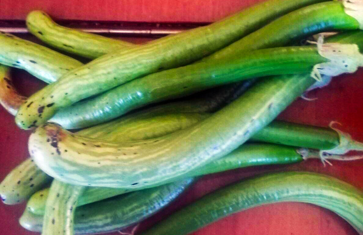 – Экзотических плодов осталось уже мало, но некоторые все еще на грядках, радуют глаз. Циклантера хорошо выросла, много ее собрала. Она похожа на горох, внутри и семена у нее есть. Мы ее жарили, это вкусно. Также засолили на зиму. Это вьющееся растение, оно цепляется усиками за опору, может и в теплице расти. Еще один необычный сорт – пальчиковый баклажан. У него тоже своеобразный вкус.