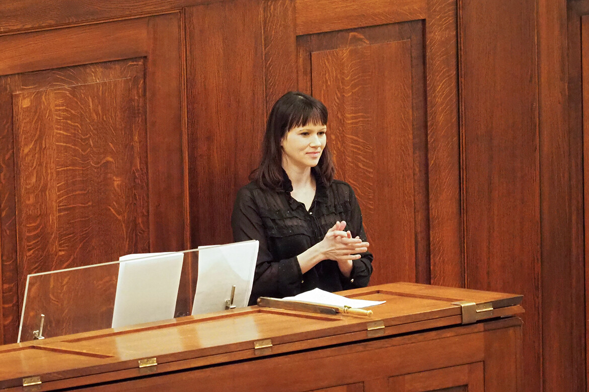 От хора на сцене пришлось отказаться – снова вмешалась коронавирусная инфекция, которая диктует свои правила: многие музыканты Государственного хора РТ приболели. Но, к счастью, на помощь пришла лауреат международных конкурсов Вероника Лобарева, исполнившая партию хора на органе. Партия органа придала сочинению возвышенности и атмосферу таинства.