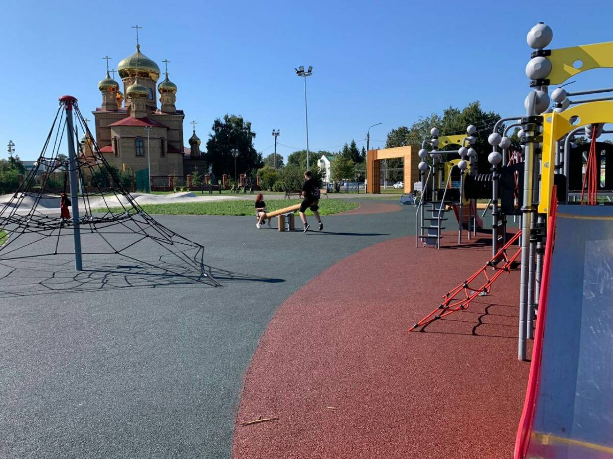 Сейчас в этом общественном пространстве завершена укладка резинового покрытия на детской площадке, обустроены треки, уложена дорожка для бега, установлена спортивная площадка.