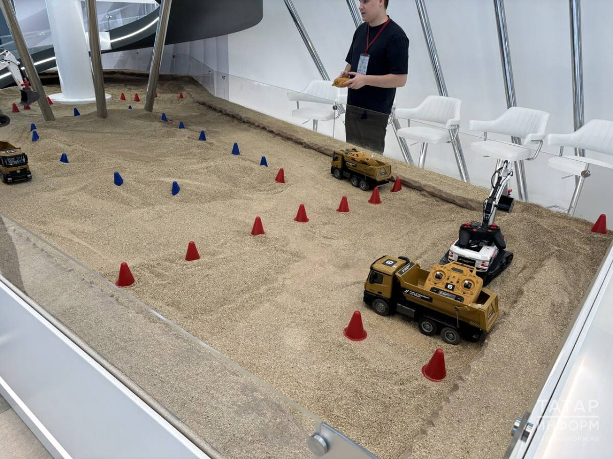 Для уставших от деловой программы есть развлечения на любой вкус. Вот, например, песочница с игрушечной строительной техникой на радиоуправлении.