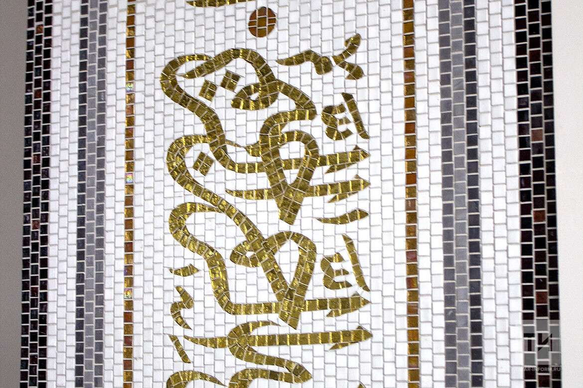 Под каждым окном выложены шамаили, которые разработал художник-каллиграф Наджип Наккаш. Вся мозаика выполнена вручную.