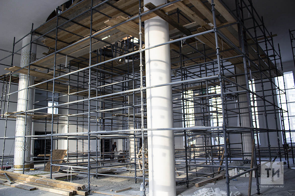По плану мечеть должны достроить в ноябре-декабре этого года. Основные работы уже выполнены, осталось сделать внутреннюю отделку. Сквозь строительные леса в главном молельном зале, клеенку в коридорах и вездесущую пыль можно разглядеть намеки на будущий интерьер здания.