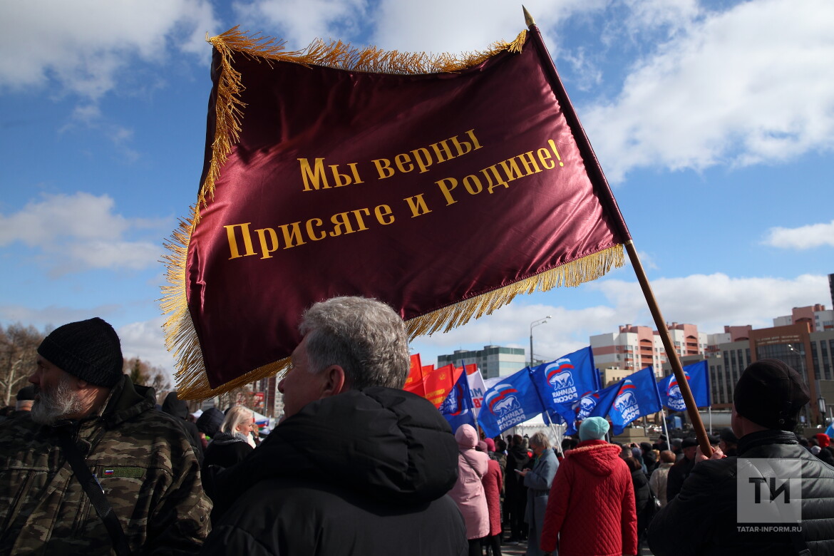 Сегодняшний митинг – это символ надежды жителей Донбасса на лучшую жизнь и мирное будущее. На концерте в поддержку Российской армии и жителей ДНР и ЛНР выступили танцевальные ансамбли и заслуженные артисты Татарстана, в их исполнении прозвучали песни «От Волги до Енисея», «Татарстан» и многие другие.