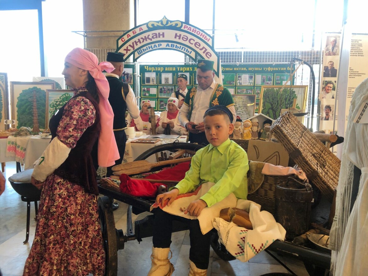 Перед выступлением в фойе выставили на суд жюри национальные блюда: гусей, уток, эчпочмаки, баурсаки, губадию, бэккены — и другие кулинарные творения, ремесла, старинные вещи, передавшиеся из поколения в поколение, ручные работы.