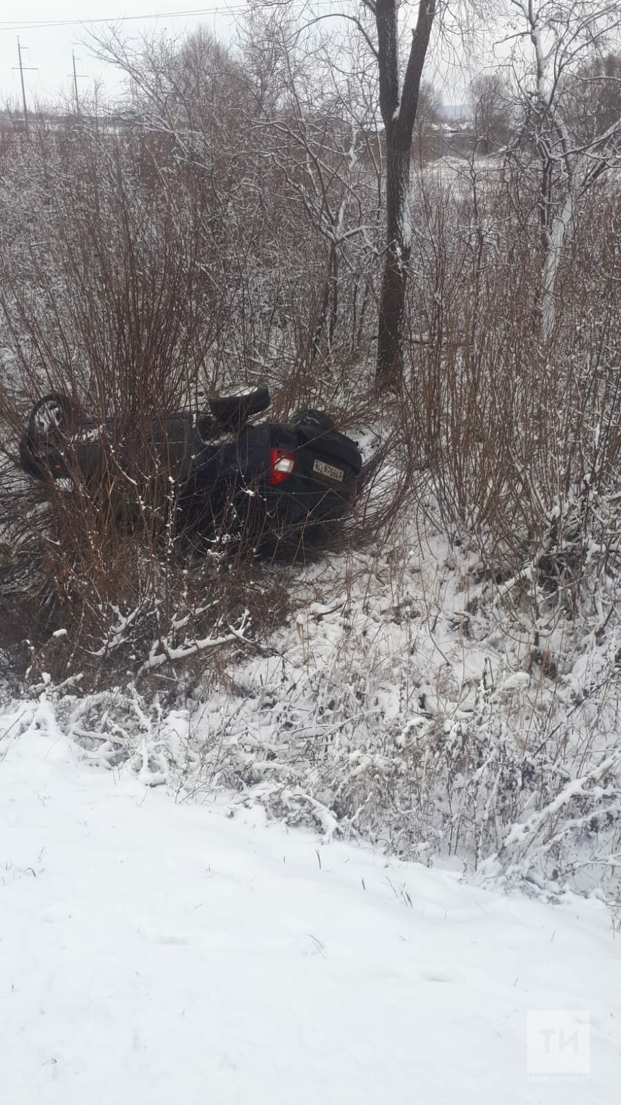 Под Альметьевском легковушка вылетела с трассы и перевернулась, пострадал пассажир