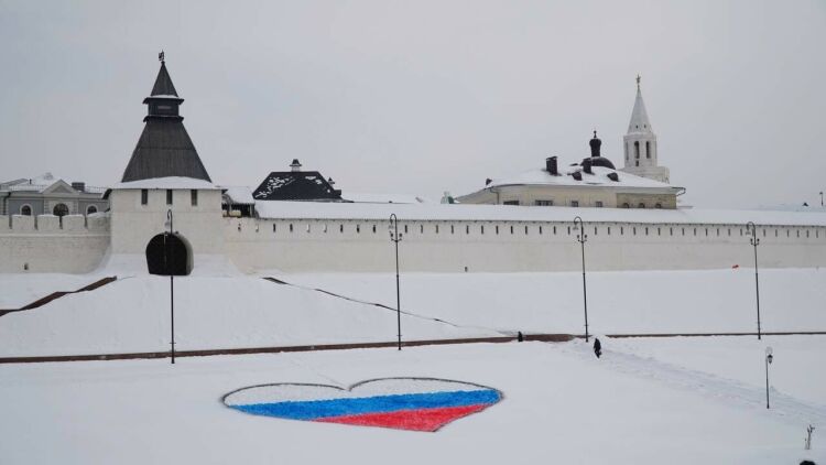 (Казань, 14 февраля, «Татар-информ»). На склоне холма, на котором стоит Казанский Кремль, в День влюбленных на снегу появился триколор в форме сердца.