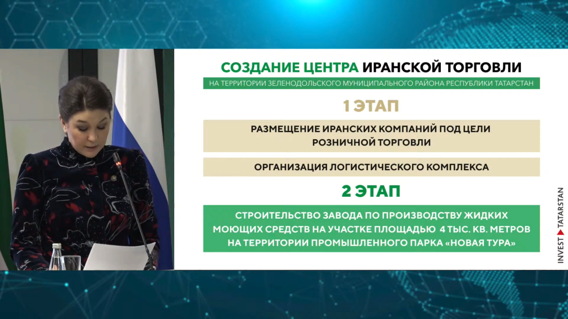 Центр иранской торговли планируют построить в Зеленодольском районе Татарстана. Об этом сообщила глава Агентства инвестиционного развития республики Талия Минуллина.
