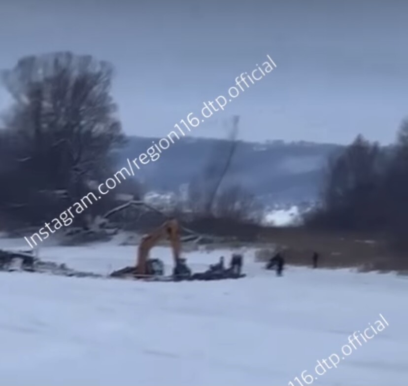Под Казанью жители поселка вытащили повалившиеся под лед трактор и экскаваторы