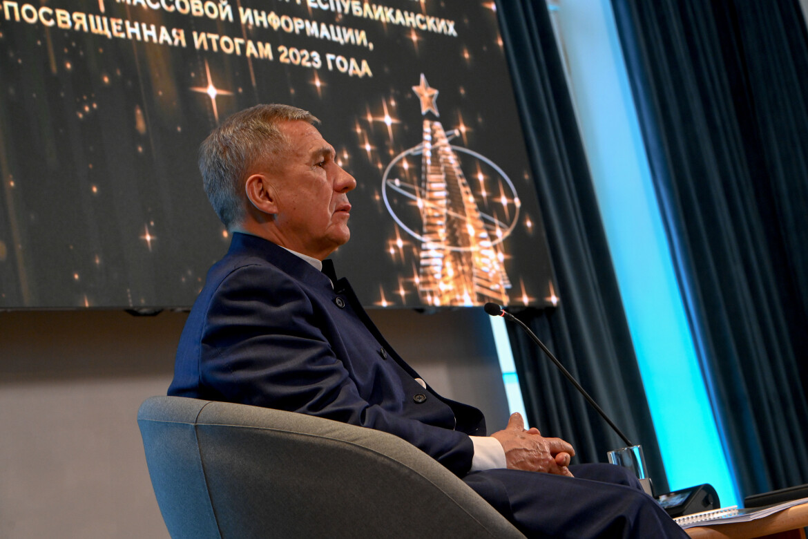 По окончании конференции Рустам Минниханов присоединился к фуршету для представителей СМИ, где пообщался с ними уже в неформальной обстановке. Раис Татарстана поздравил собравшихся с наступающим Новым годом.