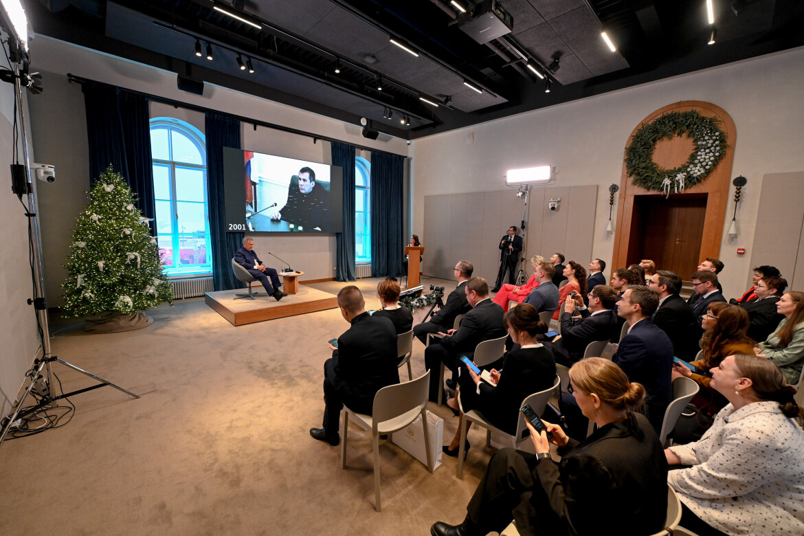 Традиции встречи Рустама Минниханова с журналистами перед Новым годом – уже более двух десятков лет. Сегодня на экране транслировали архивные кадры начала 2000-х, где он так же отвечает на вопросы журналистов.