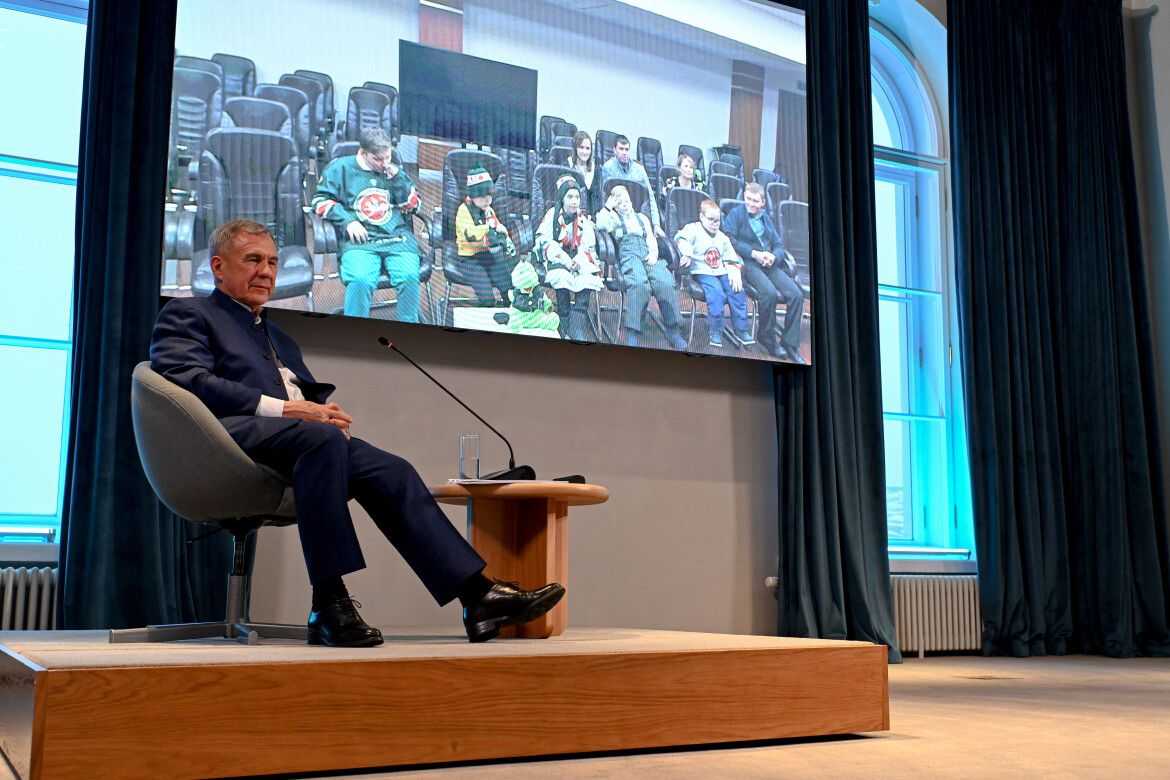 Одним из трогательных моментов конференции стало прямое включение из «Татнефть-Арены», где дети из Татарстана посетили базу хоккейного клуба «Ак Барс» и поделились впечатлениями от встречи. Это было их желанием, оставленным на новогодней «Елке желаний». Именно его выбрал Рустам Минниханов.