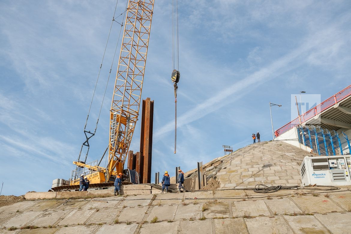 В частности, в настоящее идут работы по забивке шпунтового ограждения для сооружения первой и четвертой опор будущего моста. Шпунтовое ограждение представляет собой прочную искусственную стену, которая позволяет защитить насыпь от воды, особенно в условиях производства работ ниже нулевого уровня грунта. Затем мостовики приступят к устройству буронабивных свай. На текущий год запланирован небольшой объем работ – установка опор № 1 и 4 второго моста через реку Свияга. Всего специалистам предстоит построить пять опор.