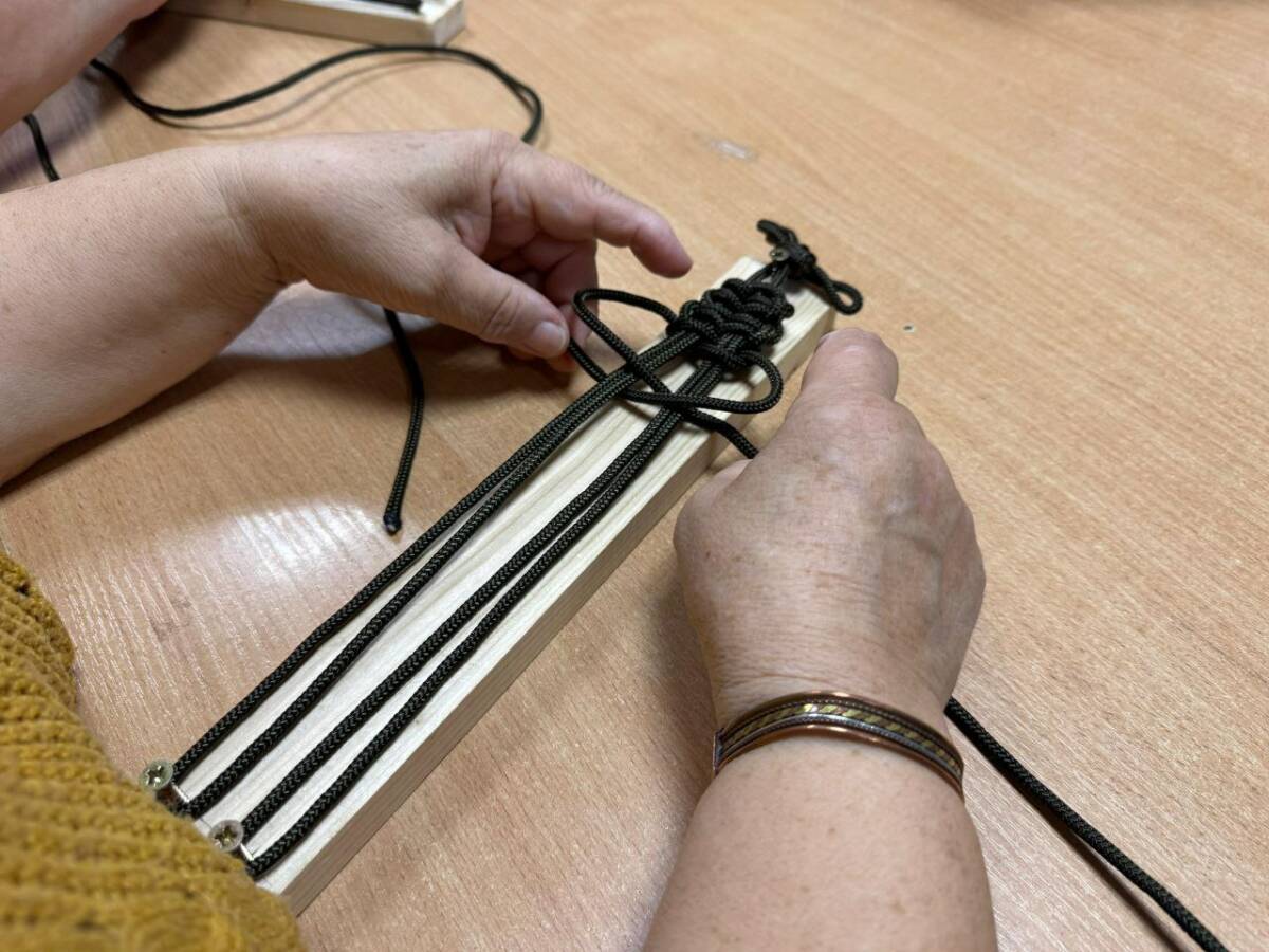 Особая часть работы – изготовление «живого» груза: маскировочных сетей, окопных свечей, сухого душа и браслетов выживания. Последние здесь уже давно поставлены на поток. Учат этому в том числе самые юные помощники.