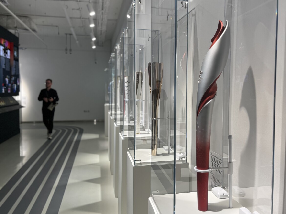 Особенно ярко развитие искусства заметно при сравнении факелов разных лет. Вдоль двух стен выстроены избранные олимпийские факелы с 1956 по 2022 год. Напротив них — полные комплекты олимпийских медалей, от памятных до золотых. Также на стенах выставочного зала проецируются кадры олимпийской хроники, а на стендах на двух языках, английском и русском, представлены отдельные фрагменты вековой истории Олимпиады.