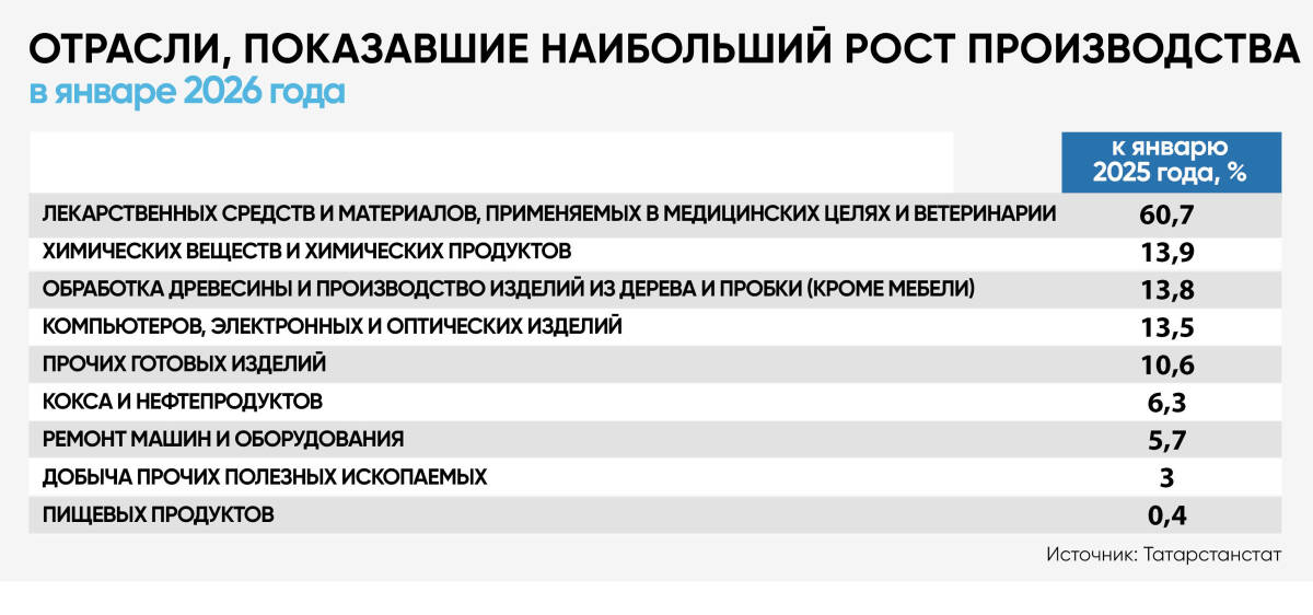 Промышленное производство в Татарстане по итогам января прибавило 5,2% в годовом выражении, в то время как по РФ в целом год начался со спада на 0,8%. Прорыв в республике обеспечила не только обработка, но и – впервые с 2023-го – добыча. Подробнее – в обзоре Аналитического центра «Татар-информа».