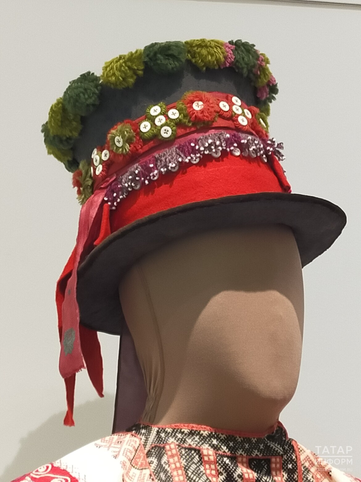 «Подлинная такая же шляпа входит в состав императорских коллекций — это то, что было собрано когда-то для выставки 1867 года. Это вещи, которые были изготовлены даже, может быть, в 40-е годы XIX века. Шляпа уникальная, она реально существовала и существует до сих пор в фондах: я как хранитель могу сказать, что она есть. Работа над созданием реконструкции этой шляпы велась года три — нужно было затонировать цвета, сделать так, чтобы она выглядела традиционно, свалять ее из такой же шерсти, сделать так, чтобы она форму держала. А шляпы валяли не только из овечьей шерсти, но и добавляли подшерсток диких животных», — рассказала в интервью «Татар-информу» куратор выставки, сотрудник Российского этнографического музея Татьяна Зимина.