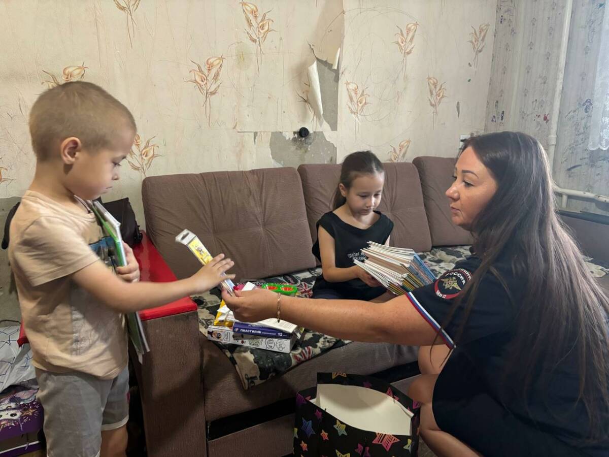 Стражи порядка передали третьекласснице Алисе комплект необходимых школьных принадлежностей и поздравили с началом нового учебного года. Особую радость визит вызвал у шестилетнего Жени, который пока не ходит в школу, но с большим интересом изучал содержимое подарочного набора сестры. Специально для него сотрудники полиции принесли в подарок букварь и игрушечную машинку. Женя поделился желанием в будущем стать полицейским. Многодетная мать поблагодарила полицейских за оказанную помощь.