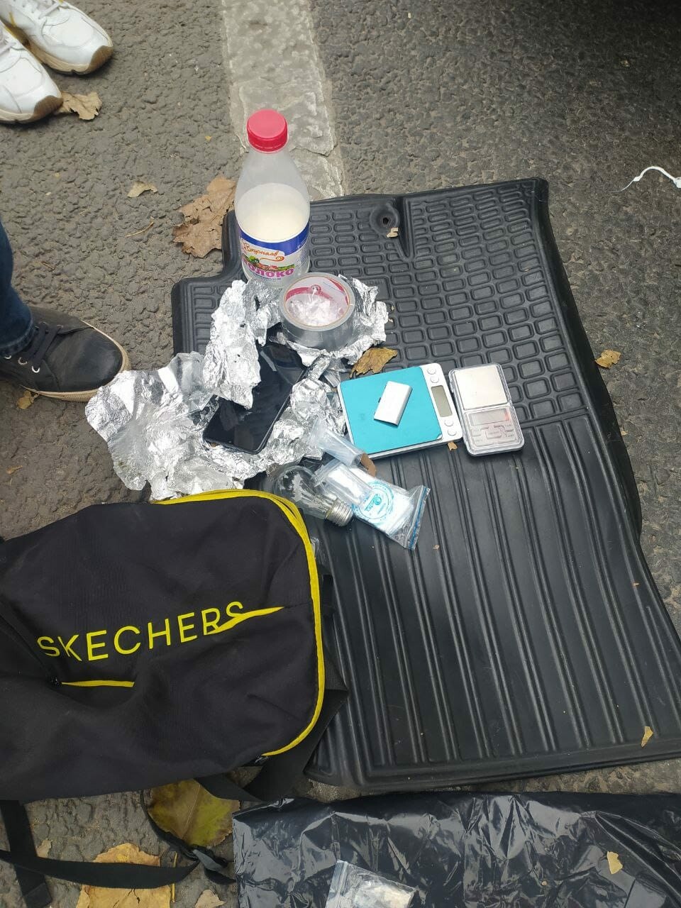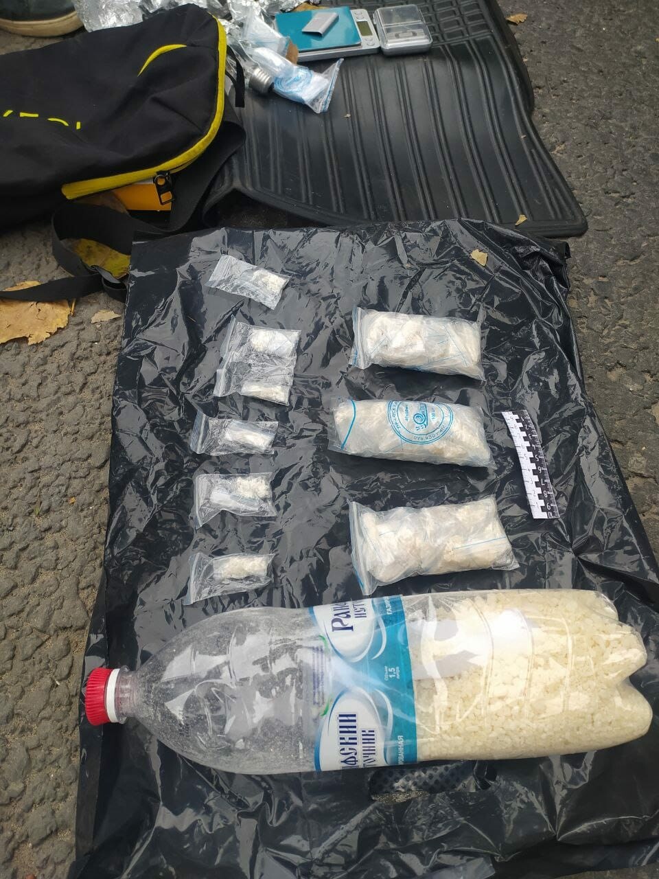 Во время досмотра сотрудники наркоконтроля нашли в рюкзаке одного из пакеты с порошком. Экспертиза показала, что этим порошком являлись наркотики мефедрон и PVP массой 477 грамм.