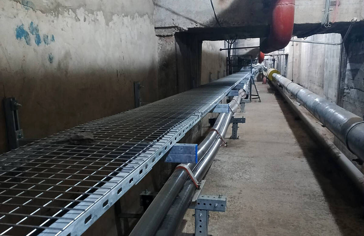 Еще одним ноу-хау можно назвать и монтаж по всей длине тоннеля кабеленесущей системы на опорах, которую приобрели у московского завода «РКС-пласт». Дело в том, что стальные трубопроводы маслонаполненного кабеля со стенками толщиной в 10 мм чрезвычайно устойчивы к механическим воздействиям. А вот кабели с изоляцией из СПЭ оказались более «нежными». Поэтому в том же помещении новый кабель решено было проложить на консолях – треугольником, по гибкой системе, с провисами через определенные промежутки.