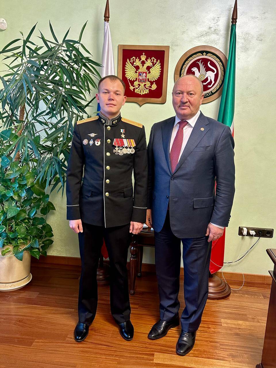 Иван поблагодарил Ахметшина за памятную медаль «100 лет генералу армии М.А. Гарееву», которую ему передали летом этого года в Севастополе.