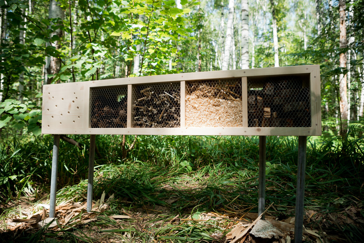 Например, первая станция называется “Территория леса”. Здесь самые юные посетители тропы узнают, какие животные обитают в лесу, – здесь размещены узнаваемые деревянные макеты бобра, лисы и зайца. На станции “По следам животных” можно изучить следы, которые оставляют дикие звери, и задуматься над тем, какой след на нем оставишь ты сам. На других станциях слышны голоса птиц и можно осмотреть город насекомых».
