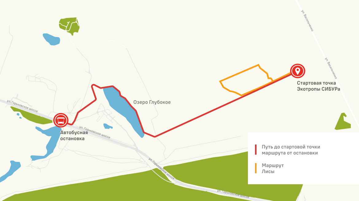 Экотропа открыта для свободного посещения. Жители и гости города могут попасть на стартовую точку экотропы, дойдя до нее по лесной дороге со стороны озера Глубокое. В будущем все желающие смогут начать движение по маршруту со стороны улицы Васильченко, здесь планируется создать остановочную инфраструктуру и пешеходный переход.
