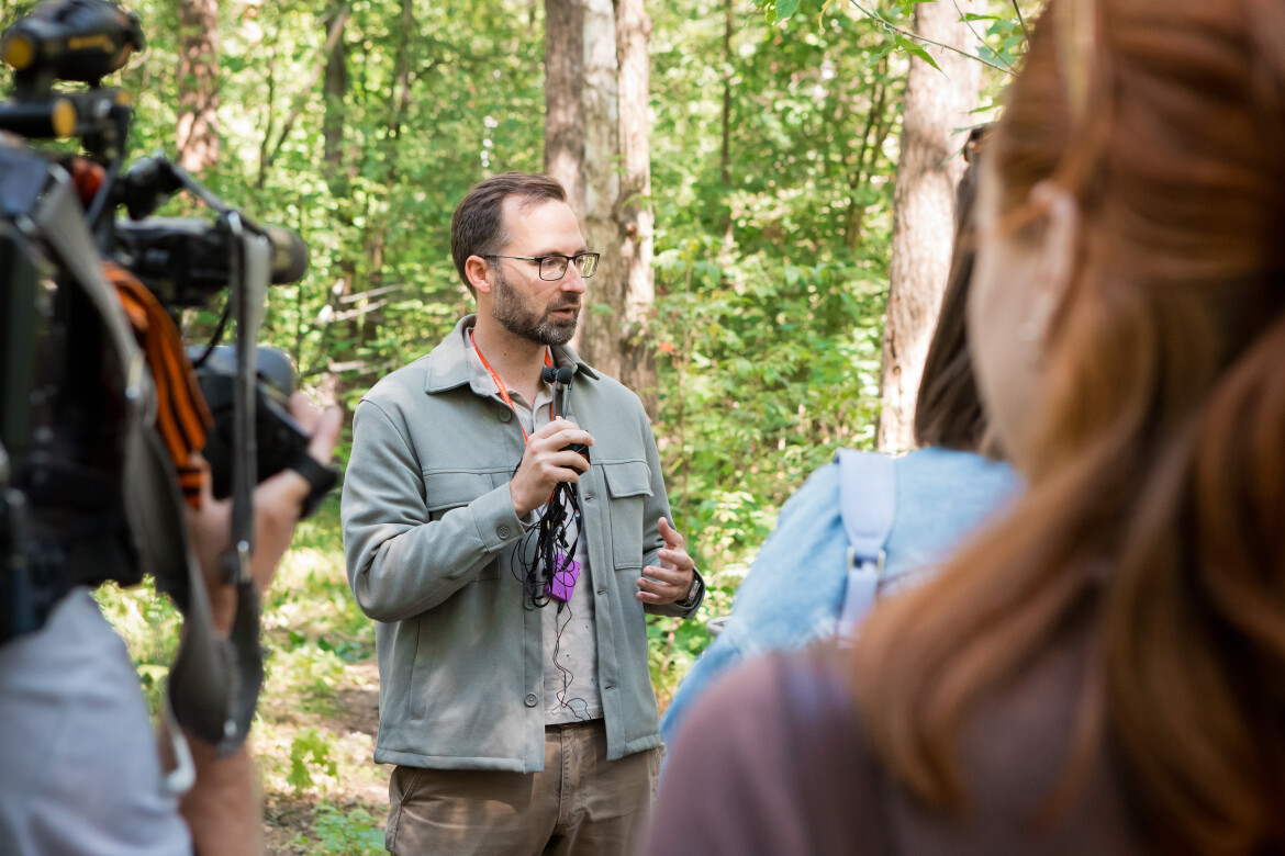 Субботним утром журналисты, блогеры и экологи собрались на открытие интерактивной экотропы вблизи озера Глубокое на территории лесопарка «Лебяжье». Новый маршрут появился в 18 километрах от центра Казани, он начинается в двух километрах от «Казаньоргсинтеза».