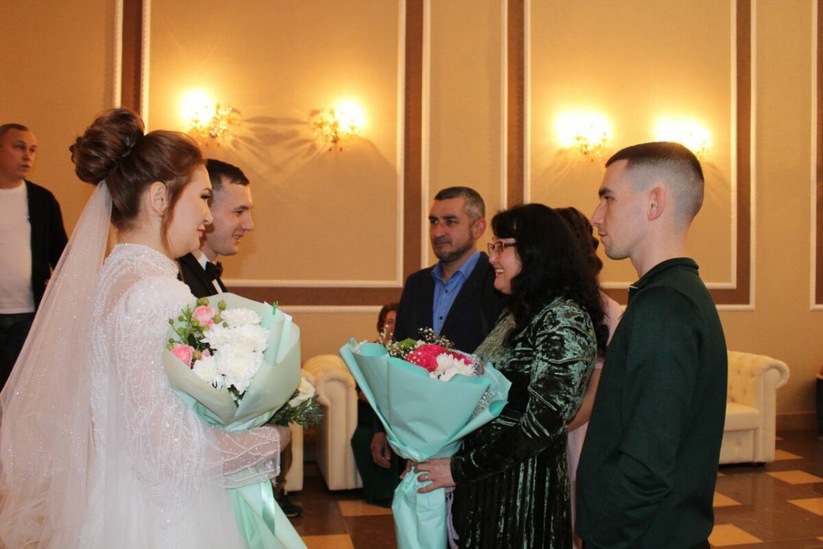 Отдельные теплые слова он адресовал Азамату и Лилияне уже от себя лично: «Для меня особенно знаменательно стать свидетелем женитьбы моего ученика. Еще в технологическом техникуме Азамат зарекомендовал себя как решительный и крепкий парень. Мы встречались с ним, когда доставляли гуманитарную помощь нашим бойцам. И на поле боя он ведет себя мужественно и бесстрашно. Азамат, мы безмерно гордимся тобой! А тебе, Лилияна, хотим сказать: за каждым мужественным мужчиной стоит умная, терпеливая и стойкая женщина. Пусть ваша поддержка станет для него надежным тылом».