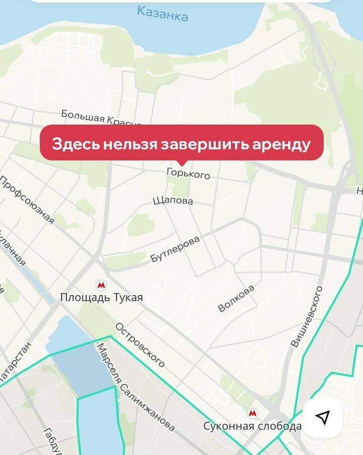 В Казани пользователи каршеринга «Делимобиль» не смогут завершить аренду авто в центре города. Сервис закрыл зону от улицы Вишневского до Кремлевской набережной, а также в районе площади Тукая.