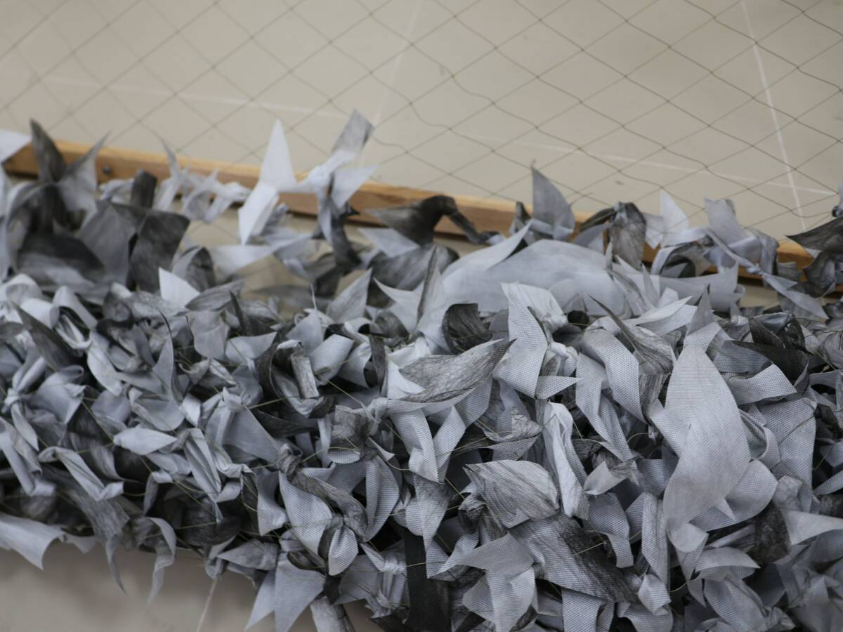 «По рассказам моего брата, там, в зоне СВО, ночью холодно, а днем оттепель. Снег тает, и сугробы становятся серыми. Поэтому мы плетем из черно-белого материала», — объясняет Гульчачак.