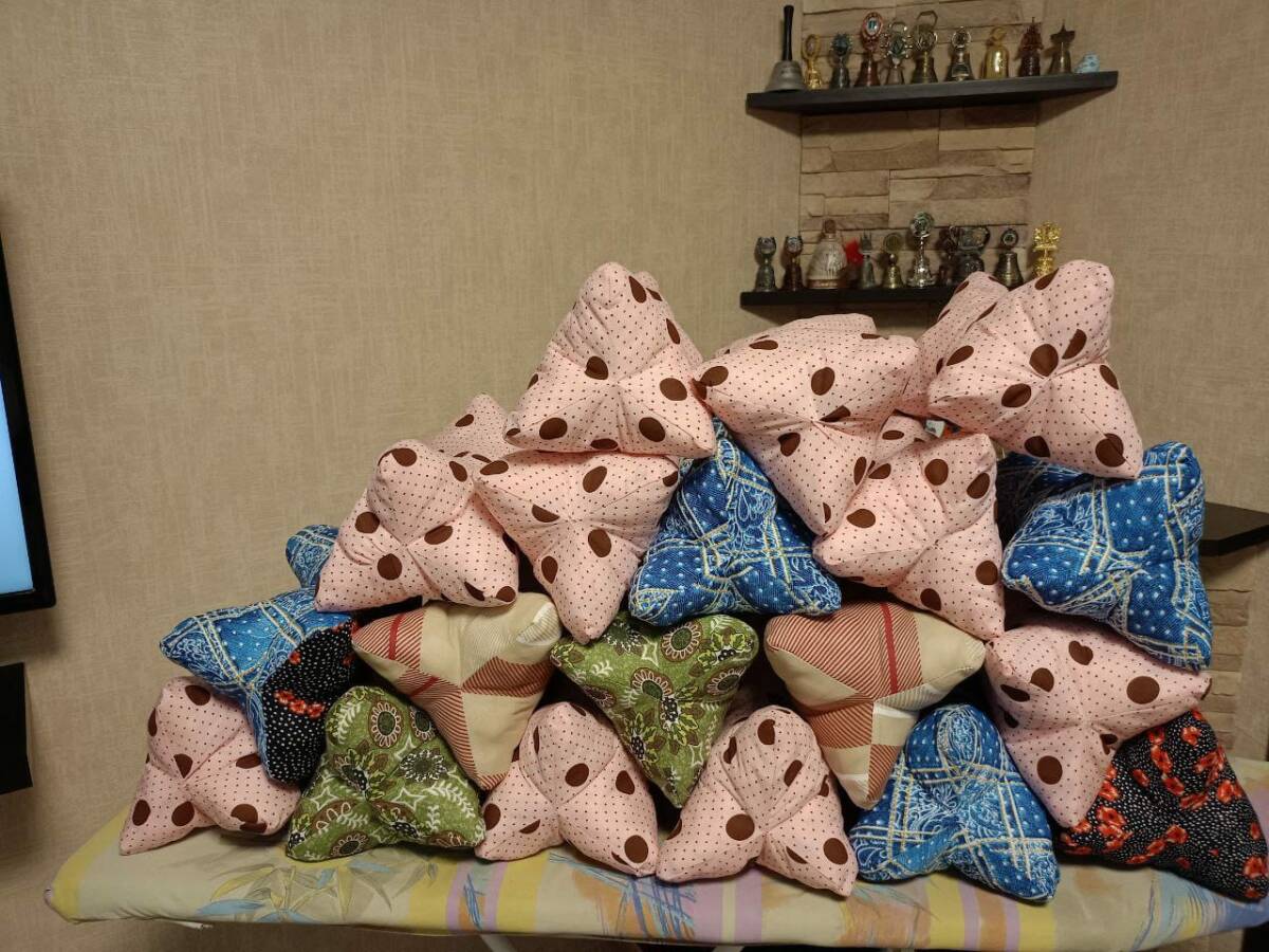 «Здесь и зять Алексей помогает. Они с Димой заготовки этих подушек набивают поролоном. У себя в мастерской даже специальное приспособление соорудили, один нарезает, другой подушки наполняет. Как приятно потом в общей группе швей-волонтеров читать отзывы от бойцов со словами благодарности за наш труд», — подчеркнула Гюлсира Киямовна.