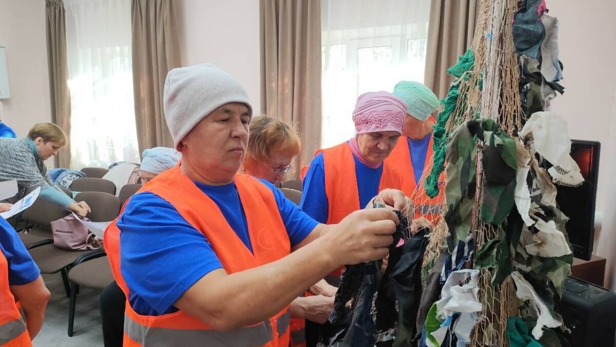 «Мы вот плетем сети. Плели из белых и зеленых тканей. Какие бойцы нам заказывали, мы с большим интересом плели. Правда, у нас возможности были не очень удобные, но мы старались», — отметила волонтер Римма Ахмадиева.