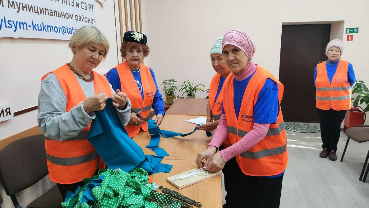 В Кукморе продолжается активная работа волонтеров серебряного возраста, которые объединяются для плетения маскировочных сетей, приготовления лапши, вязания теплых носков для российских бойцов, участвующих в специальной военной операции.