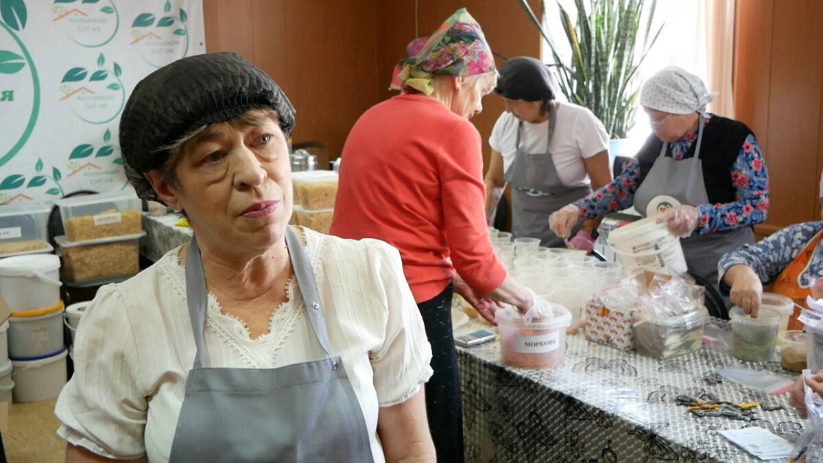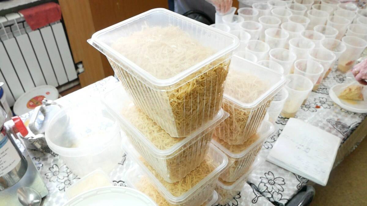 «В неделю мы собираемся по вторникам и пятницам. За каждую фасовку получается от 400 до 500 порций. Делаем борщ, рассольник, гороховый суп, суп-пюре, салат из свеклы, суп-лапшу», – рассказывает волонтер Резеда Шишкина.