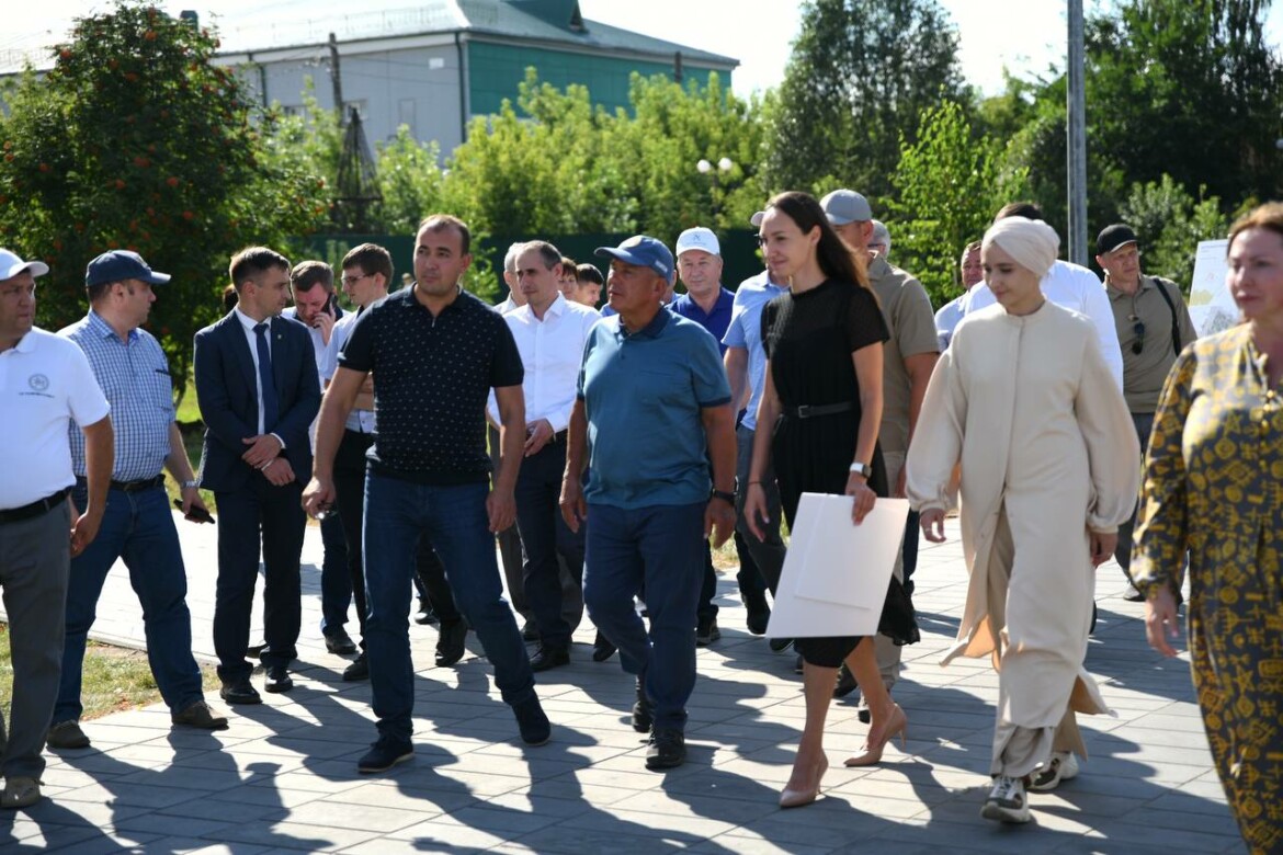 Президент Татарстана Рустам Минниханов ознакомился с тем, как идет благоустройство Центральной площади в Буинске. Куратор программ развития городской среды в Татарстане Наиля Зиннатуллина показала ему, как обновляются парк и примыкающие к нему главная событийная площадь и единственная в городе пешеходная улица (отрезок ул.Р. Люксембург).