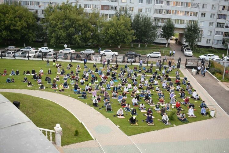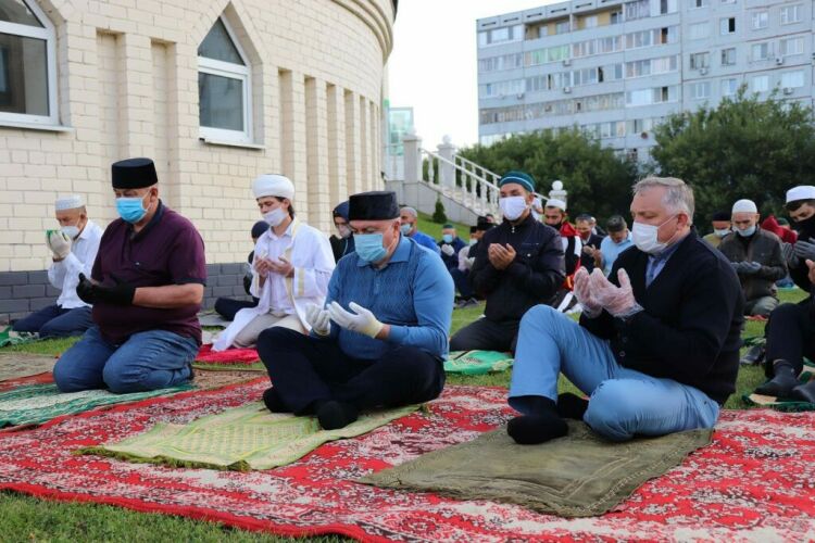 Для создания безопасной обстановки на коллективной молитве посетителей мечетей заранее предупредили о мерах предосторожности: быть в маске и перчатках, с собой иметь индивидуальный коврик, соблюдать полутораметровую дистанцию. Практически во всех мечетях молитвы прошли во дворах.