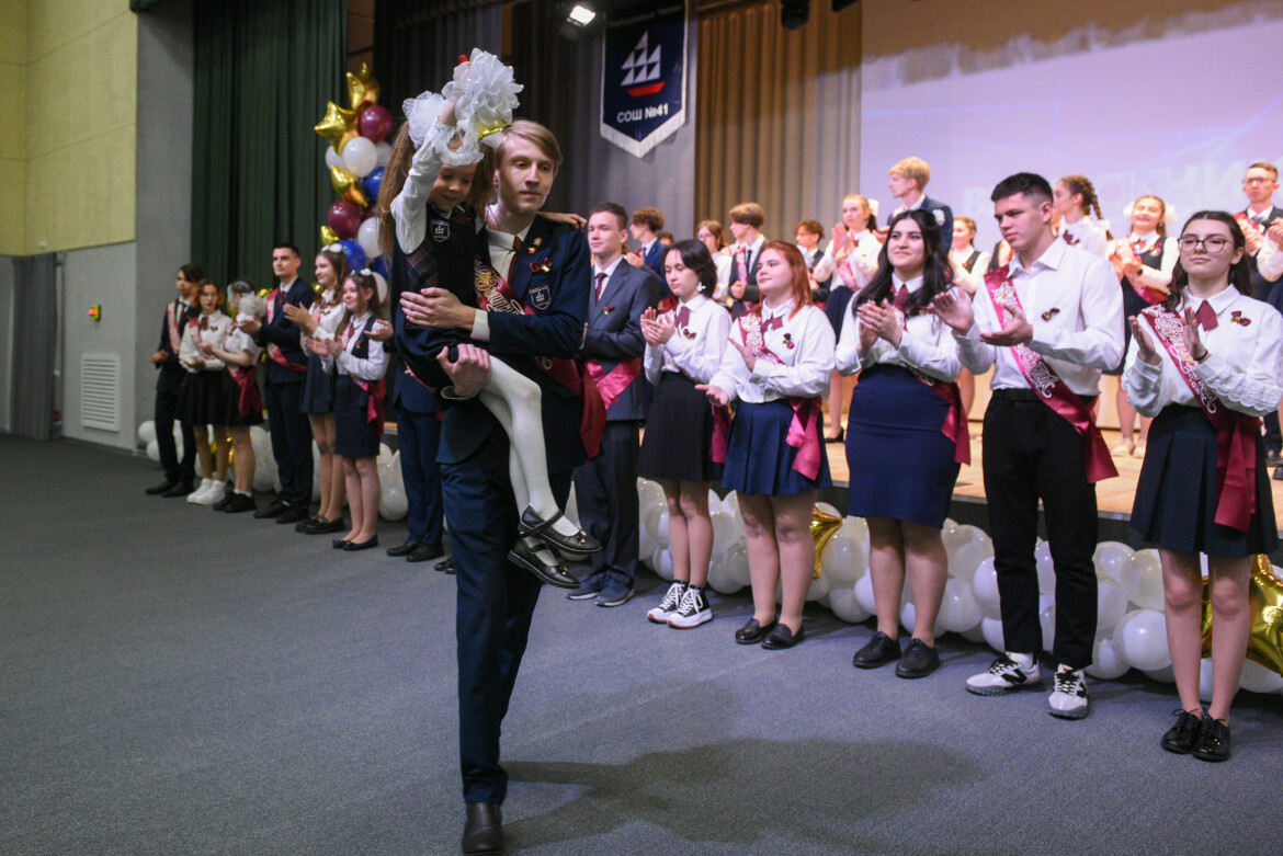 Сегодня школа №41 выпускает своих первых выпускников — 48 одиннадцатиклассников. Поздравить их приехали руководитель исполкома Фарид Салахов и начальник Управления образования Рустем Хузин, который был первым директором этого учебного заведения.
