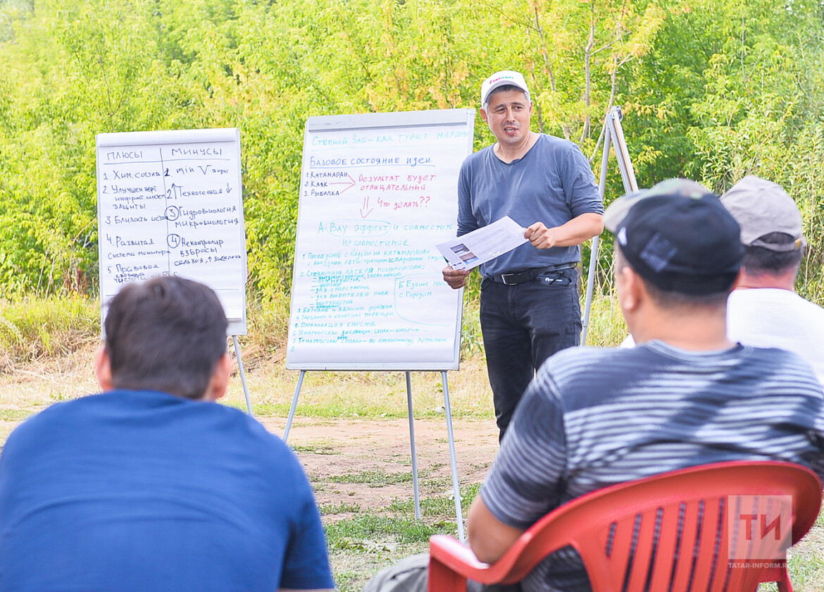 Участников разделили на три команды, предложив каждой свой уникальный кейс. Первая команда должна была на финише сплава предложить проект преобразования Степного Зая в полноценный туристический и рекреационный объект (разумеется, без вреда природе). Второй коллектив озаботился решением задачи по доведению качества воды в реке до уровня питьевой. И, наконец, оставшимся участникам предложили придумать варианты превращения акватории реки в место для выращивания рыбного молодняка.