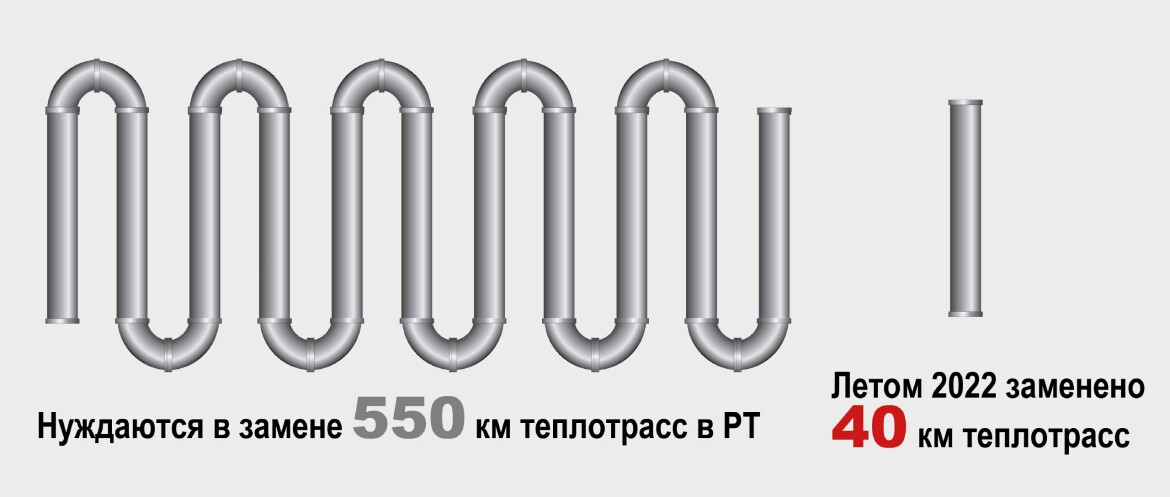 Учитывая, что износ теплосетевой инфраструктуры растет с каждым годом, снижение этого показателя выглядит миной замедленного действия. Тем более что в «Татэнерго» требуемый объем замены трубопроводов со сроком службы более 25 лет на данный момент оценивают в более чем 550 км.