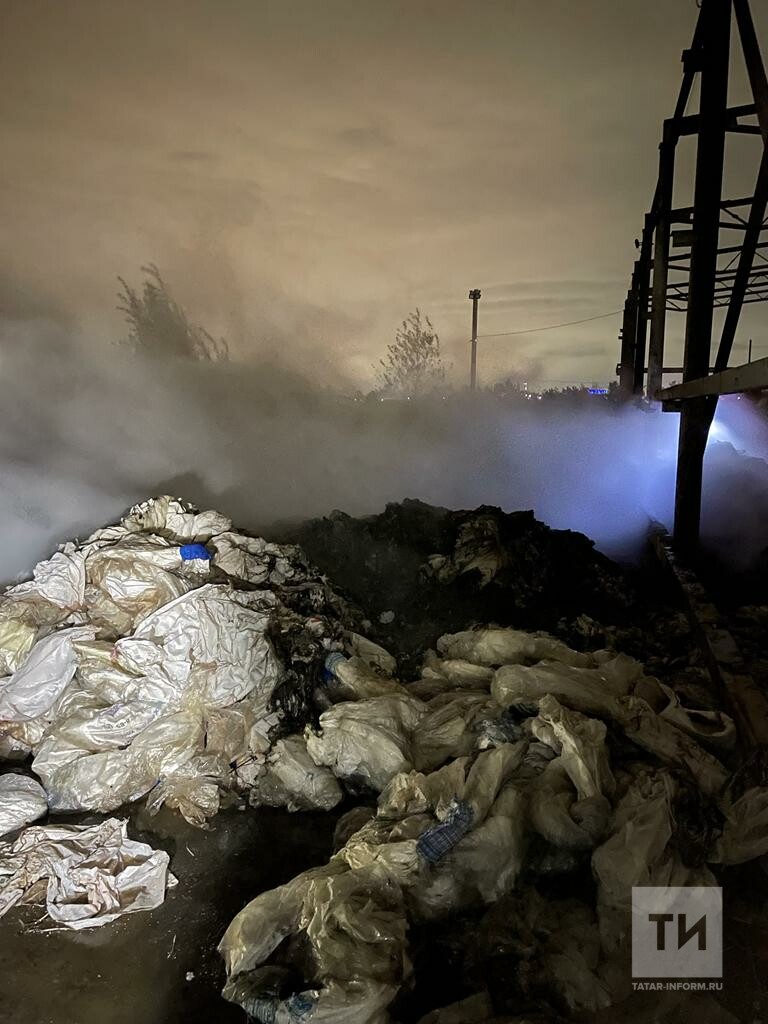 Пожар случился вечером на территории «Трансвторсырья» в Челнах, загорелся пластик